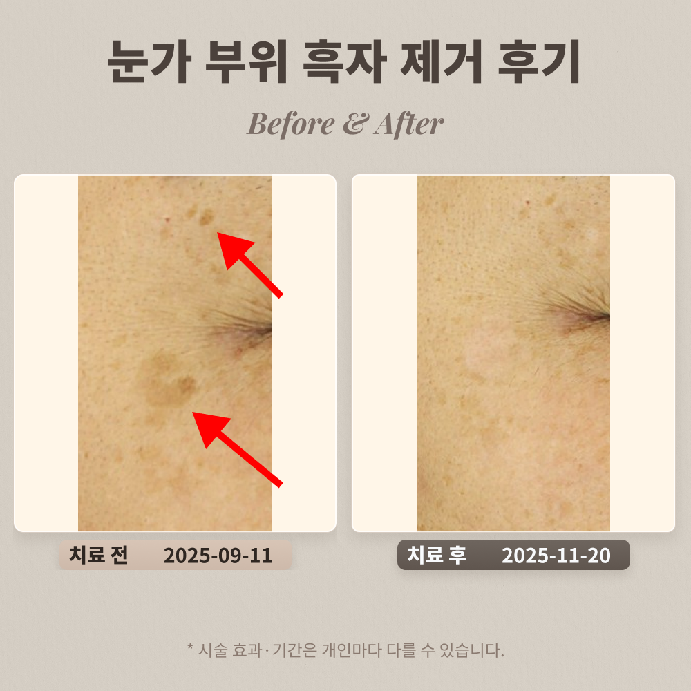 - 눈가부위 흑자 제거 - 눈가주변 잡티 존재 - 향후 잡티는 치료해나갈 예정