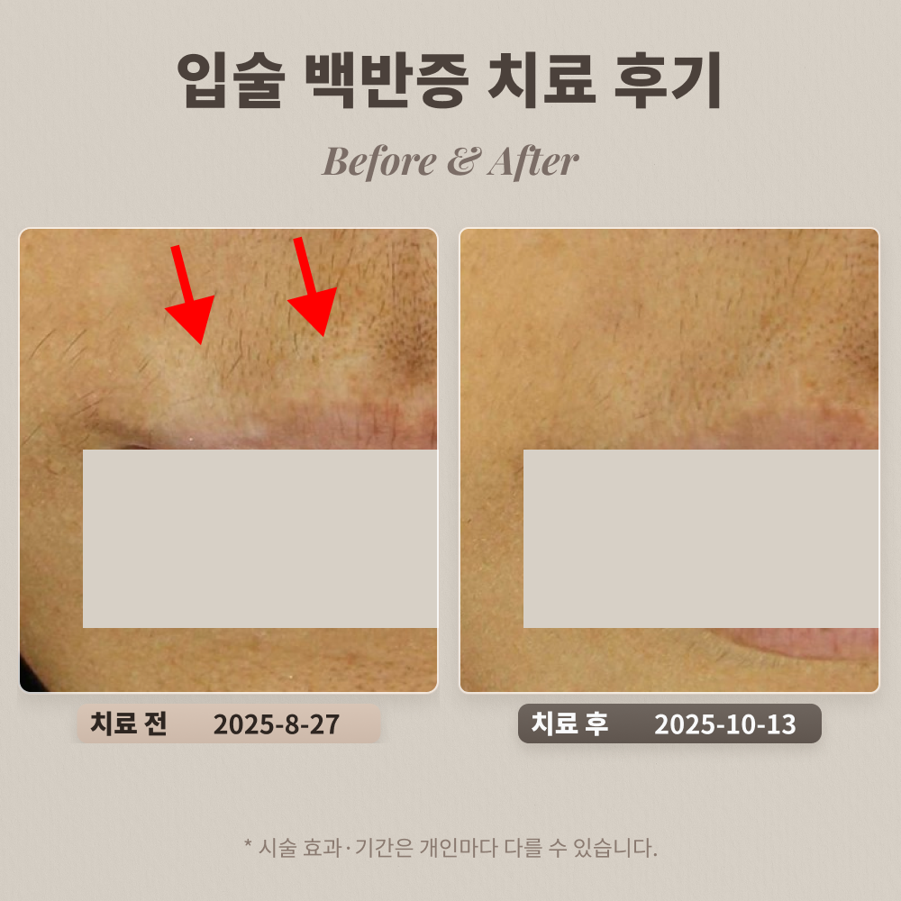 - 윗 입술 백반증 개선(80%) - 조기 치료로 피부톤 자연스러운 개선