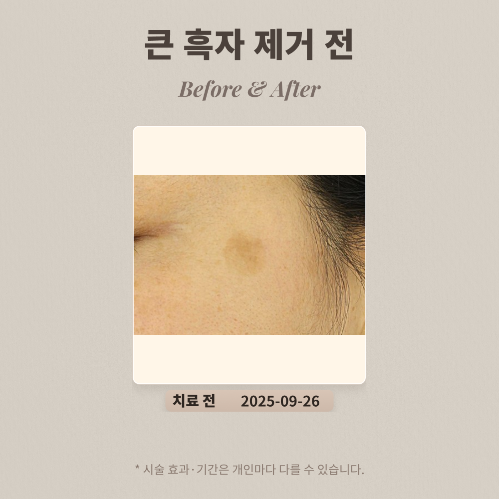 갈색 반점으로 알려진 흑자는 표피성 색소질환으로, 리팟 레이저를 통해 효과적으로 제거할 수 있습니다. 그러나 크기가 큰 흑자는 제거 과정에서 얼룩이 남거나 병변의 일부가 잔존하는 경우가 많아 치료가 복잡할 수 있습니다. 따라서 이러한 흑자 제거 시 충분한 경험과 전문성을 갖춘 의료진에게 치료를 받는 것이 중요합니다