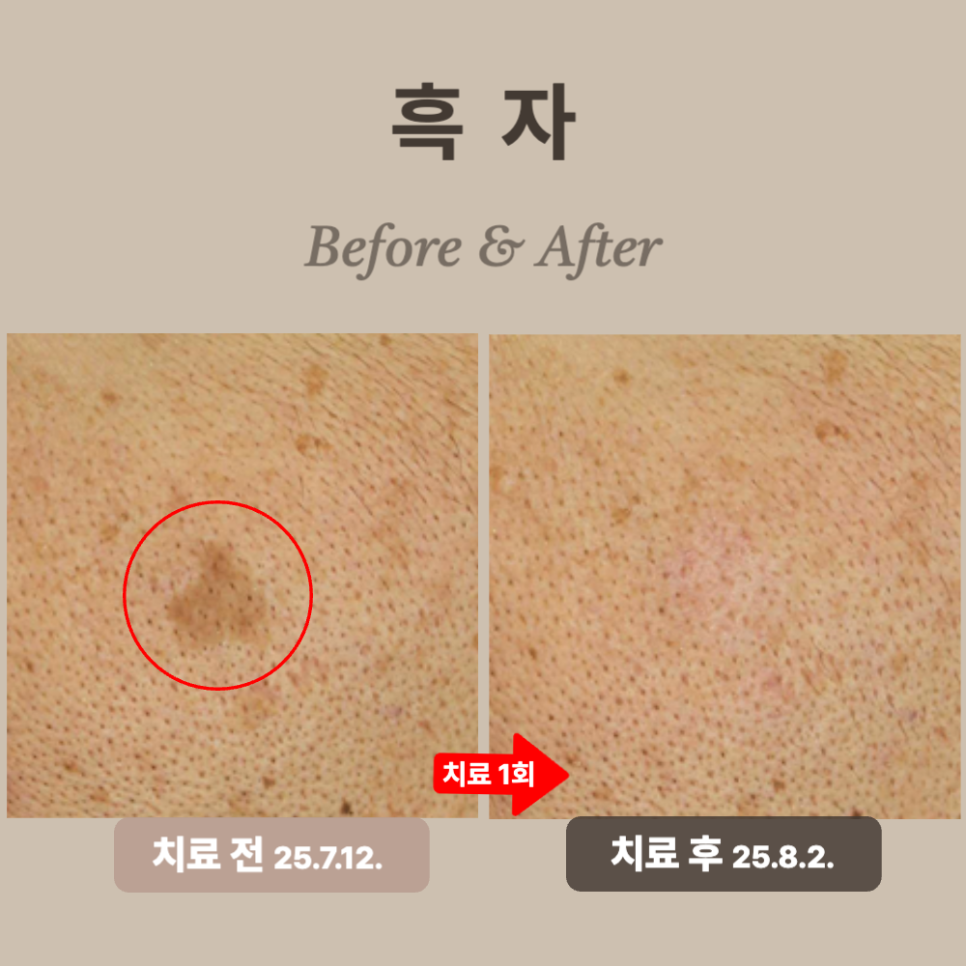① 리팟레이저 1회로 표피성 흑자 제거 ② 자외선 차단·재발 방지 생활관리